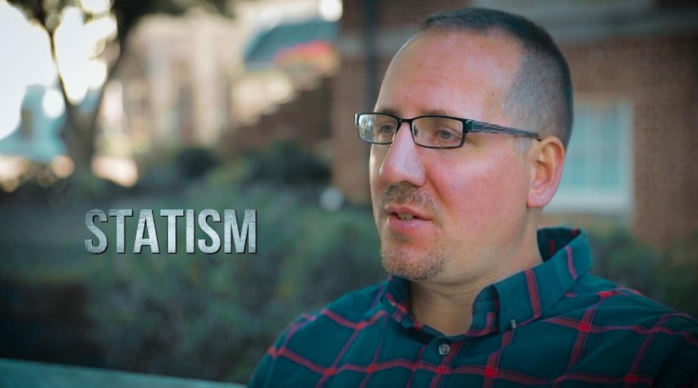 Last among the three idols, the film takes on statism: the belief that the state is the highest legal authority to whom citizens must look to to solve all their problems. For instance when Wiersema says that God’s Law trumps court opinions such as Roe v. Wade, an older gentleman outside a church building angrily calls him an anarchist. Garwood’s response: “[Statism] is this unhinged belief that unending authority belongs to the collective; the group of people who get to say ‘this is righteous’ or ‘this is unrighteous.'”